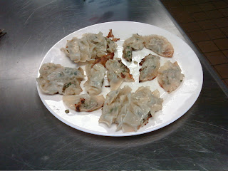 This week in class was really cool. We cooked foods from many different countries with a common ingredient cabbage. Which I don't think I have found a bad way to eat. I was able to work with the Pot Stickers (which is another food that is totally awesome and now I know how to make). They are great to make because you can do the prep work up front and cook them when you need them. They do take alot of prep work, and you have to watch when you steam them so that they do not touch each other or they will stick together and rip. You make them not rip apart but then you have a "lumpsticker" . While still edible it does lose the plating points.